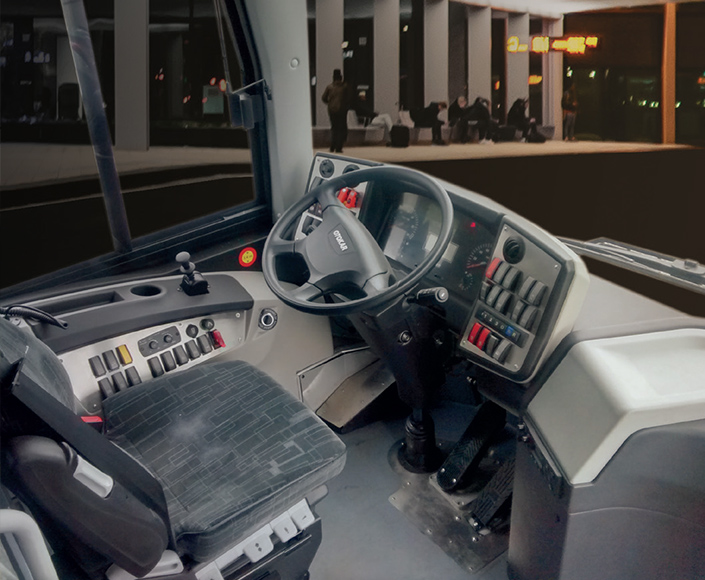Салон витончений, має сучасно оснащену зону водія, що відповідає усім сучасним ергономічним критеріям. Незалежна підвіска передніх коліс та використання технологій безпеки, таких як ABS, EBS та ASR, забезпечує плавний рух.